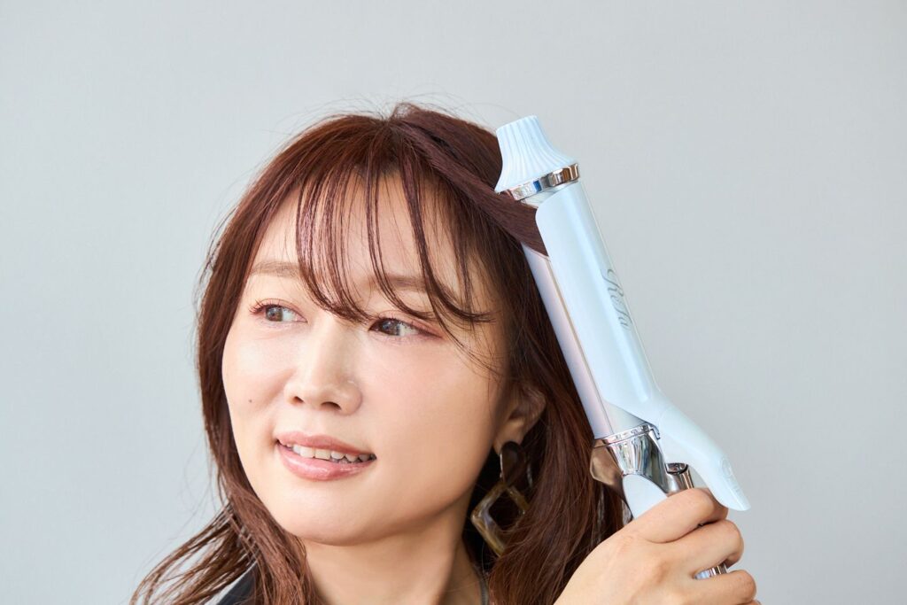 「アイロンは直径38mmの太めのものを使って、自然な動きを出すのがおすすめです。レイヤーを生かしてナチュラルな動きを出していって」